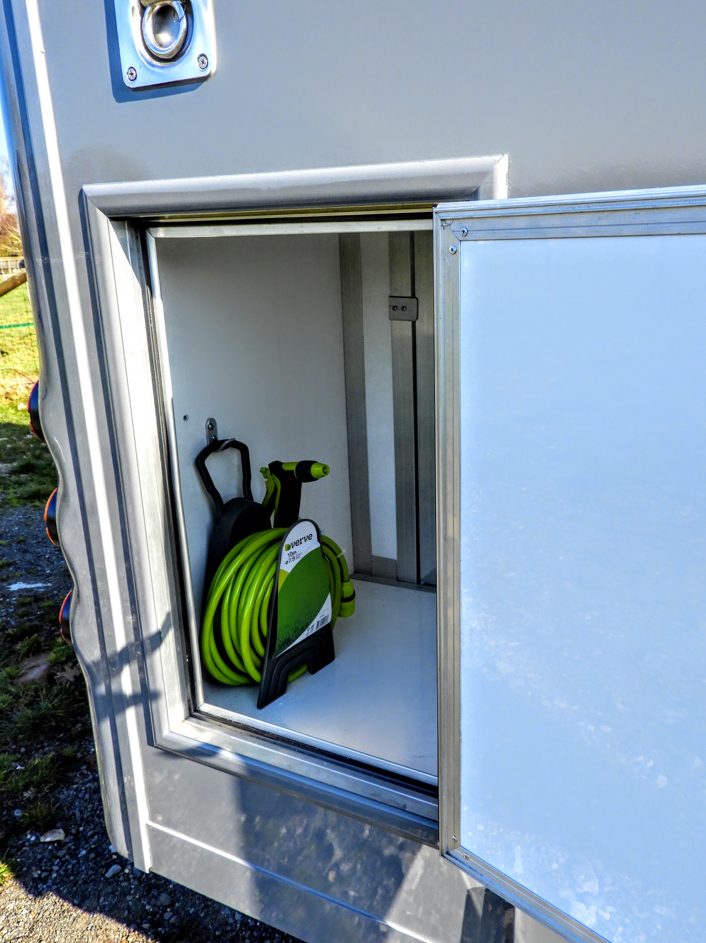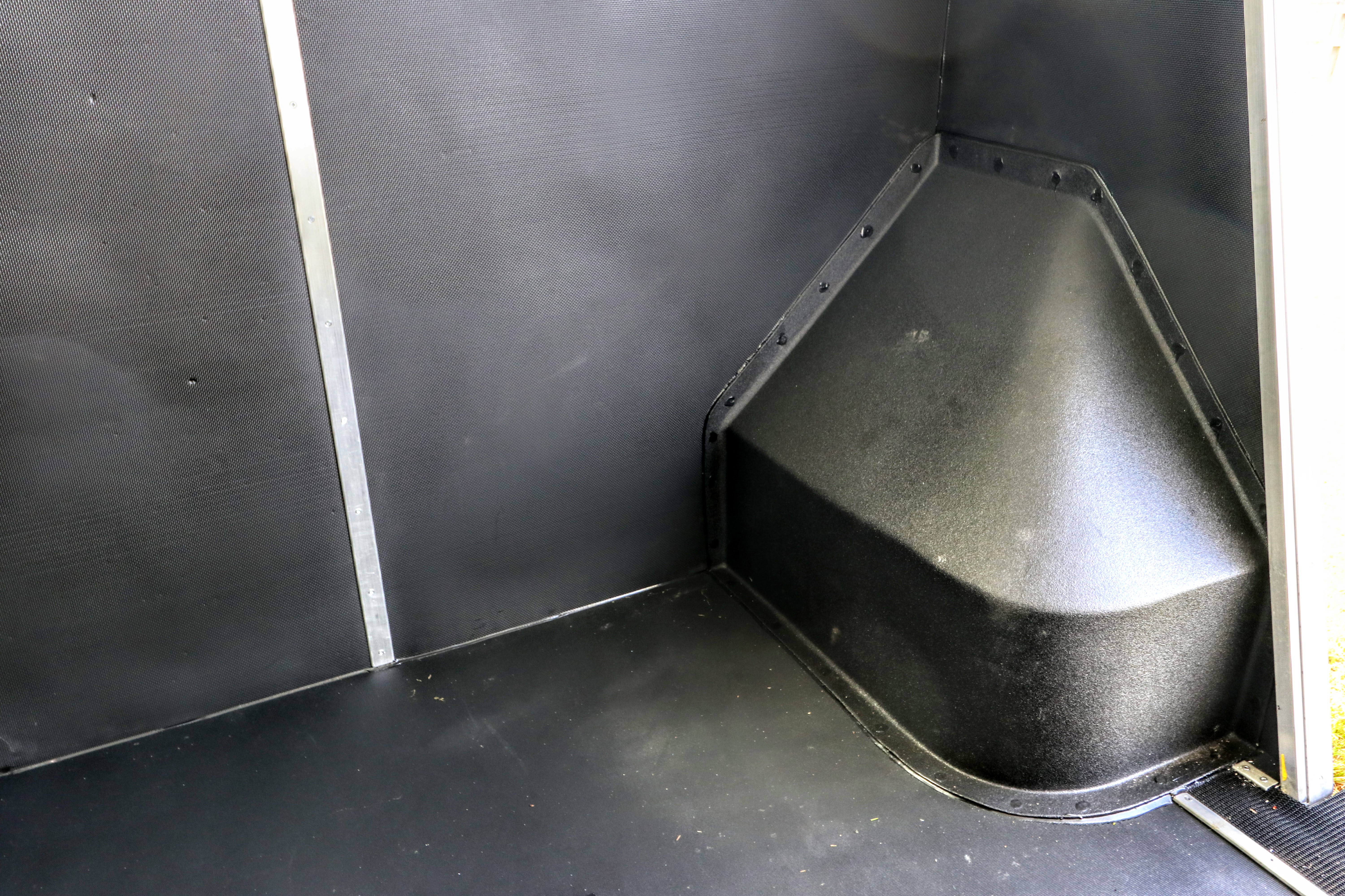 It has a strong, robust and large horse area, designed to take two large dressage horses in comfort, style and safety. The large side-mounted tack locker carries both jumping and dressage saddles, plus an array of tack for long stays away.