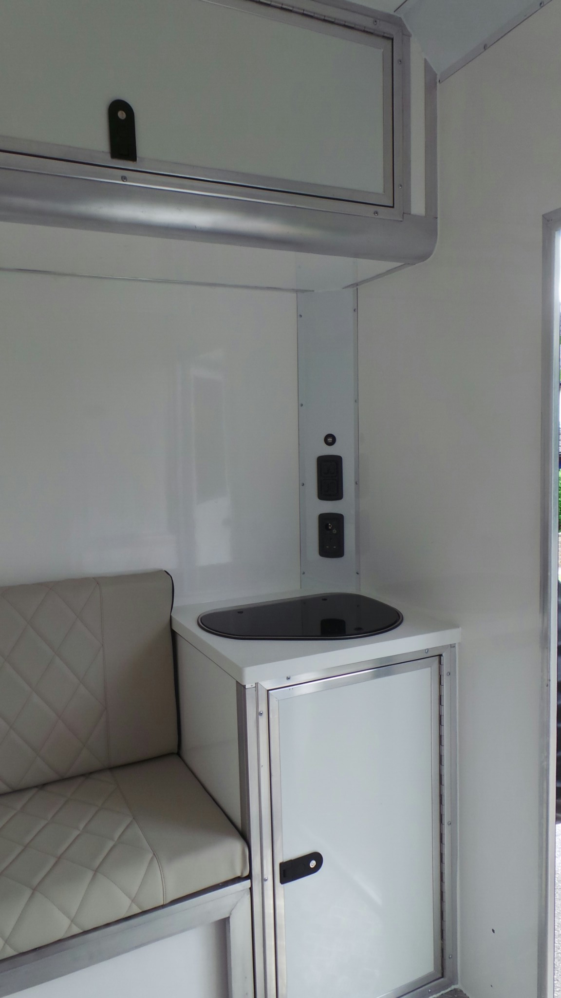 • LPG gas hob / sink combi unit mounted in a floor standing cupboard with locking door. Comes with with tap and electrically pumped water supply