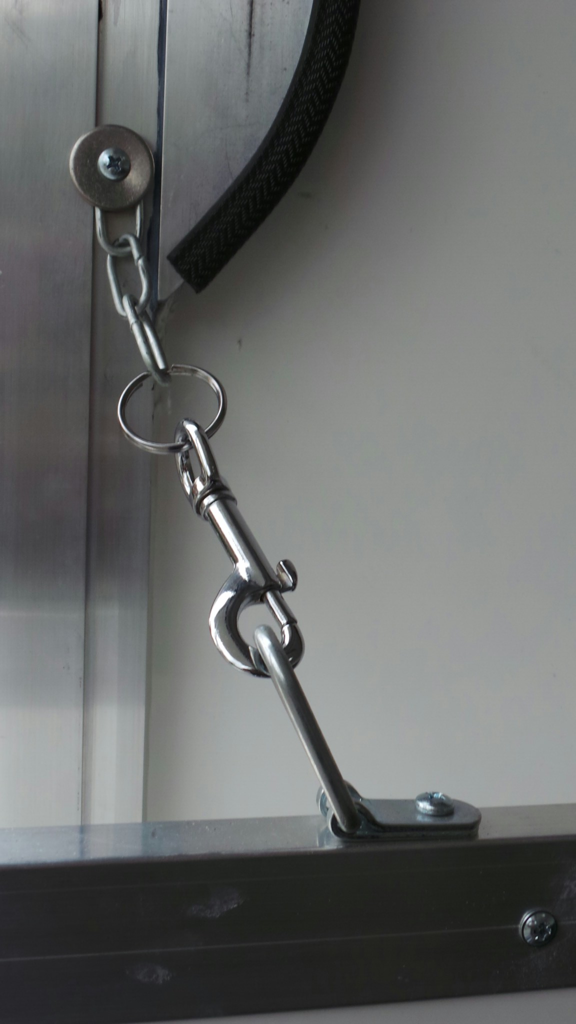 • Wide Grooms Door with opening privacy glass window and key operated lockable latch